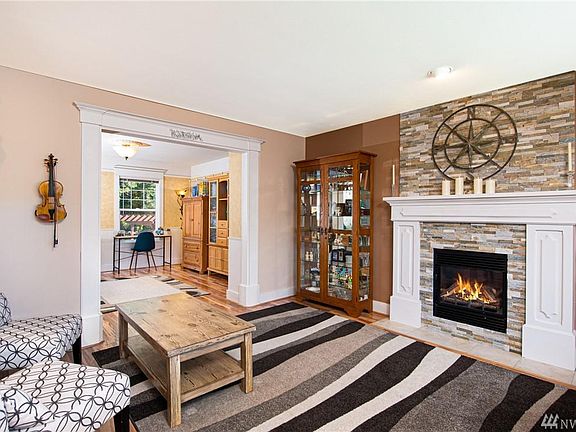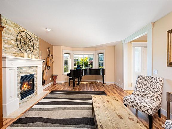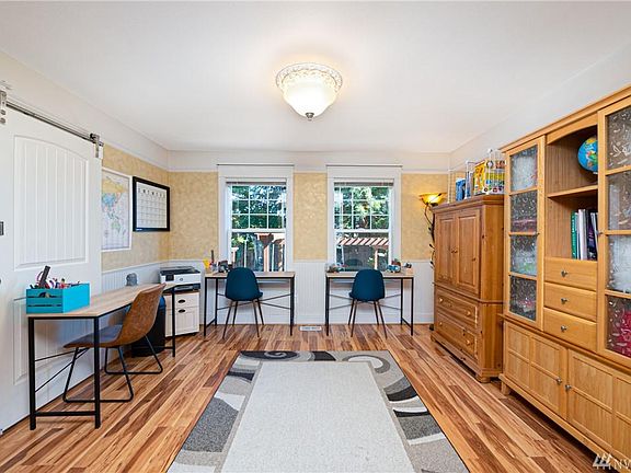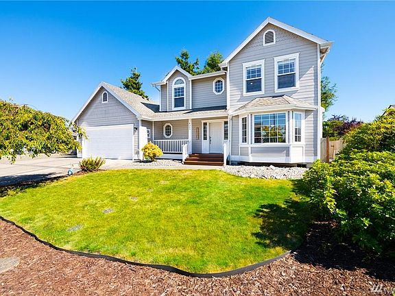 Spacious and updated home with partial sound views! Amazing interior features such as hardwood floors, crown molding, tall baseboards and wide trim throughout! Open concept kitchen, eat in area and den which lead out to a large deck and fenced backyard with sports court and plenty of room to entertain. Kitchen has granite counter tops, ss appliances and island w/breakfast bar. Cool barn door access to formal dining room. Master bed/bath has soaking tub, separate walk in shower & dual sinks.