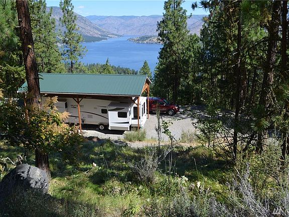A beautiful 2.7 ac on the south shore of Lake Chelan. Only minutes from the state park and boat launch. Spectacular views of Lake Chelan. Only 15 minutes from down town Chelan. Partly treed multiple building sites. Level pad with 35 ft fifth wheel that is located under pole building plus a shed and generator.