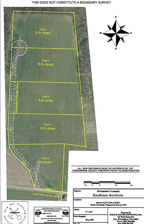 Auction 11/1: An excellent opportunity to purchase 5 acre building sites with good terrain & privacy. Each parcel has unique characteristics from hilltops to seclusion and each offers good accessibility via private drive. The driveway is already in place so allow yourself the opportunity to drive or walk this land to pick out your own building site. Parcel 1: 5 Acres w/ access via 50’ DPD Parcel 2: 5 Acres w/ access via 50’ DPD Parcel 3: 5 Acres w/ access via 50’ DPD Parcel 4: 5 Acres w/ access via 50’ DPD Parcel 5: 4 Acres w/ 268’ frontage on Gunther Miller Rd. & access via 50’ DPD TERMS: 10% nonrefundable down payment day of sale with the balance due at closing. No contingencies. Acreage & frontage amounts are approximate and subject to final survey. Buyer to pay $900 per parcel in surveying. Subject to all articles of record. Mineral rights were previously withheld and do not transfer. Subject to deed restrictions. Parcels will have a common maintenance agreement for driv