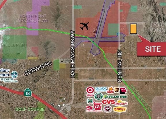 North Apple Valley is poised for huge growth. Approximately 4 miles north of this subject parcel at the Dale Evans Pkwy & I-15 off-ramp Brightline West is nearing its groundbreaking of a High Speed rail line to Las Vegas - proposed there is its home base passenger and maintenance hub which is to include lodging, hospitality, goods and services. The surrounding vicinity represents a vacant expanse of flat buildable land yearning to be developed as Southern California's next logistics mecca. With Interstate 15 adjacent goods can move freely and easily west via Interstate 40 and north along Interstate 5 by way of Highway 58. This offering represents an opportunity to get out in front of the wave before it builds.