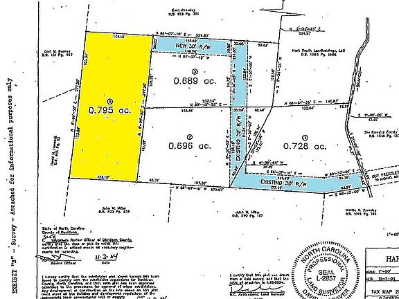 Lot on dead end road located in West Davidson area. Just under 1 acre (0.79) next to private land with a great wooded view and close to Tyro schools and shopping. Zoned RA1 for double wide home.