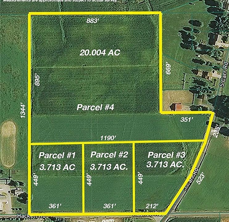 THIS IS PARCEL #1 - Exciting Real Estate Opportunity! 31 Acres Open Land - To Be Sold In 4 Parcels - East Union Twp. – Wayne County – Southeast Local School District - ABSOLUTE AUCTION, all sells to the highest bidder on location: LIVE AND ONLINE BIDDING AVAILABLE ON TUESDAY – AUGUST 11, 2020 – 6:30 PM. Real Estate: 31 Acres gently rolling cropland, corner parcel. Road frontage on Carr Rd. and Hackett Rd. All mineral rights owned by seller to transfer. Land to be sold bidders choice as follows: PARCEL #1: 3.7 acres with 360 ft. frontage on Hackett Rd. - PARCEL #2: 3.7 acres with 360 ft. frontage on Hackett Rd. - PARCEL #3: 3.7 acres with 212 ft. frontage on Hackett Rd. and 523 ft. frontage on Carr Rd., corner parcel. - PARCEL #4: 20 acres productive cropland, well-drained, 235 ft. frontage on Carr Rd. - Land is a good investment you can enjoy! Parcels will be sold bidders choice and will NOT be offered together as an entirety. Walk land at your convenience. Bank financing available to