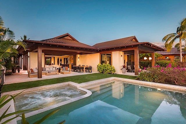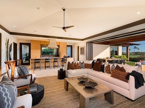 The Hale `Alani Residences are a collection of single-family and paired homes located between the 7th and 8th holes of the members-only golf course. Khoi Le, of Glazer Le Architects, was inspired by both the natural beauty of the Hawaiian Islands and topography of the land when designing these homes. The result of this inspiration is a home that is unique on the Big Island in terms of style and design sensibility. On the exterior, the homes feature distinctive copper roofs and western red cedar or stucco walls. Inside, the homes have spacious bedrooms and guest suites connecting to an open-concept great room and kitchen space. Sliding mahogany doors open the interior living space to the lanai and private yard creating a seamless indoor/outdoor living space. Hale Alani 11 is on the golf lake, it overlooks fairway #8 and is sold unfurnished. Furniture Package available on request.