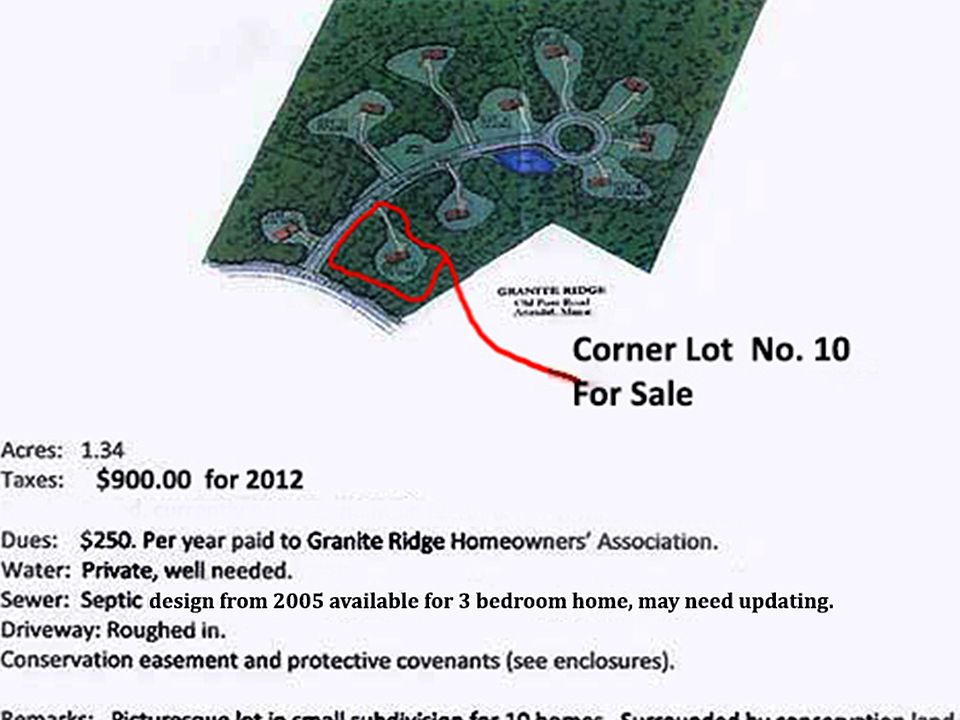 Desirable 1.3 acre corner lot east of I95 in neighborhood of quality homes, with underground utilities and surrounding conservation land. Privacy and rural atmosphere just minutes from Kennebunkport, restaurants, shopping and area beaches. Surveyed, perc- tested, driveway roughed-in and ready to go! $95,000.