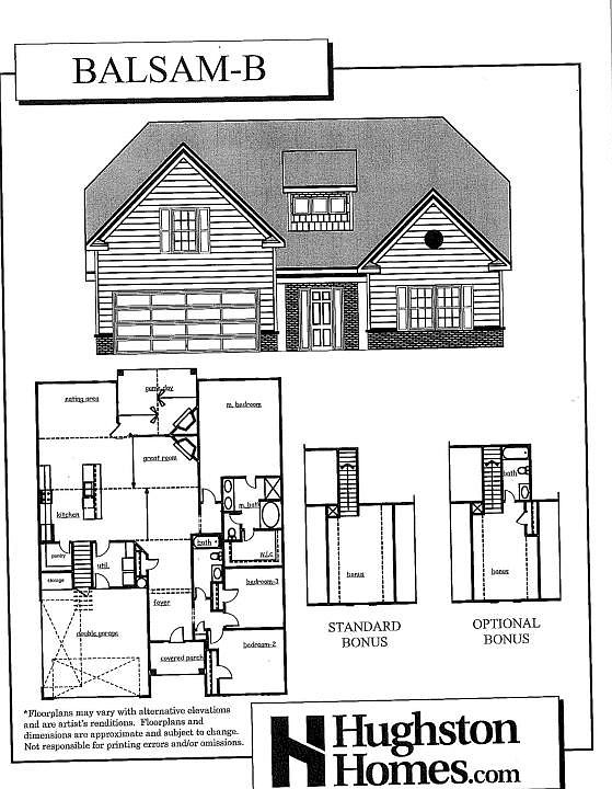 ''The Balsam''-Ranch plan w/nice sized bonus or 4th BR over garage w/finished bath& closet. Huge island kitchen and eating area open to vaulted great room w/corner fireplace. Spacious master suite. Master bath w/tile shower, soaker tub and double vanities. Granite throughout and hardwood in main living areas. Tile in wet areas. ''Game Day'' patio with fireplace and prewire for TV perfect for entertaining. ((COME CHECK OUT OUR STANDARDS!!))