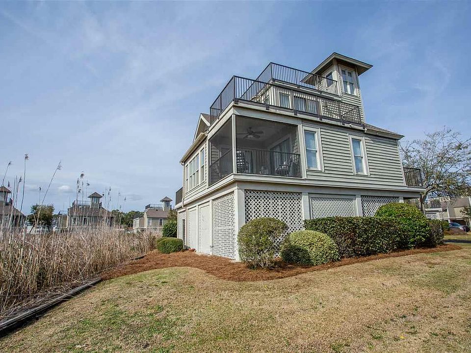 THE HARBOR LOFT COMMUNITY HAS A PRIVATE PIER AND DAY DOCK (NO OVERNIGHT DOCKING). THE VIEWS ALONE WILL WOW YOU FROM THE LIVING ROOM AND ALL FOUR DECKS/PORCHES. YOU WILL SEE THE WATERWAY THE MARSHES AND THE TIDEWATER GOLF COURSE. THE FLOOR PLAN HAS THREE BEDROOMS ALL SEPARATED FROM THE BALANCE OF THE HOUSE AS A SUITE WITH DEDICATED BATH. THE HOUSE HAS NEW CARPETING AND MANY AREAS OF FRESHLY PAINTED WALLS. OWNERS HAVE ACCESS TO FITNESS CENTER, TWO POOLS, TENNIS COURTS AND THE OCEAN FRONT CABANA. TIDEWATER IS A GATED COMMUNITY WITH 24 HOUR WATCHMEN ON DUTY. HARBOR LOFT IS A SITE CONDOMINIUM CONCEPT. ONE OWNS THE HOUSE AND THE GROUND BENEATH THE CONCRETE PAD. ALL OTHER GROUNDS ARE COMMON AREAS. FEES INCLUDE LAWN MAINTENANCE, ANNUAL TERMITE INSPECTION AND PAINTING THE HOUSE, BUT OWNER IS RESPONSIBLE FOR MAINTENANCE OF THE HOUSE AND INSURANCE.
