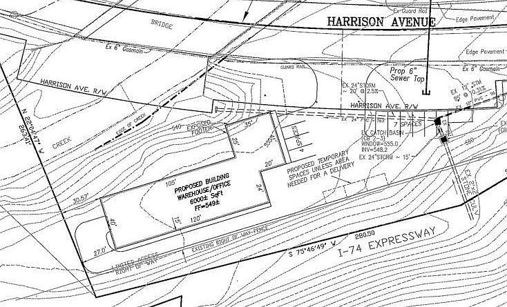Great location for desirable office space/retail or warehouse. 1.75 acres by 1-74 Expressway. Several proposed options available. Great value.