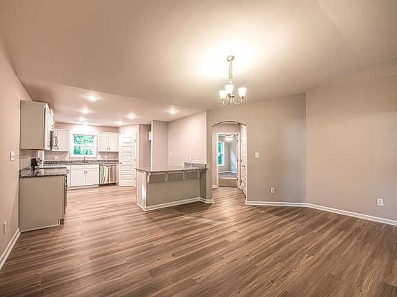 The Kids plan, as part of our Carolina Series, is uniquely designed so it can accommodate four different variations of the layout! This is the 2 car with bonus options, with the same base interior as all other Kids plans except built with a two car garage and additional square footage of bonus room space behind the garage and with connection to your kitchen. When you walk in the front door you will be greeted by a cozy living room with views out the front of the home and onto the expansive front covered porch. As you move through the home, the spare bedrooms and guest bathroom will be located just off the living room, there is a strategic separating archway between the living and dining to define the spaces accordingly, through the dining room you will see the kitchen with tons of counter top space and eat at bar-top section, then in this variation there will be a door way off the kitchen that leads to your bonus room with windows across the back to enjoy your backyard and lots of natural light! Also off the dining room is your owner's suite hallway that contains a coat closet and laundry closet for convenient access to the owner's bedroom with walk-in closet and spacious bathroom. The Mill community features may include a propane gas fireplace in the living room, garage service door, and even dual vanities in owner's bath. Additional Luxury Choices are available such as a side load garage, rear covered or screened porch, and our luxury owner's bathroom. Amenities: Dual Vanity in Owner's Bath, Garage Service Door, Vaulted Ceiling