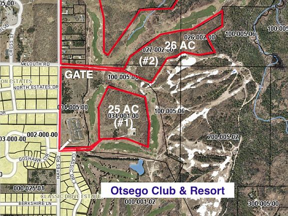 25.5 ACRES overlooking Tribute Golf Course at the Otsego Club & Resort, a public 4-season golf and ski resort in Gaylord, Michigan! Nicely wooded and elevated for maximum views of the 1st, 2nd, 17th and 18th holes, including fantastic valley views! Private estate or pre-approved, high density multi-unit development possible with access to city utilities if desired.