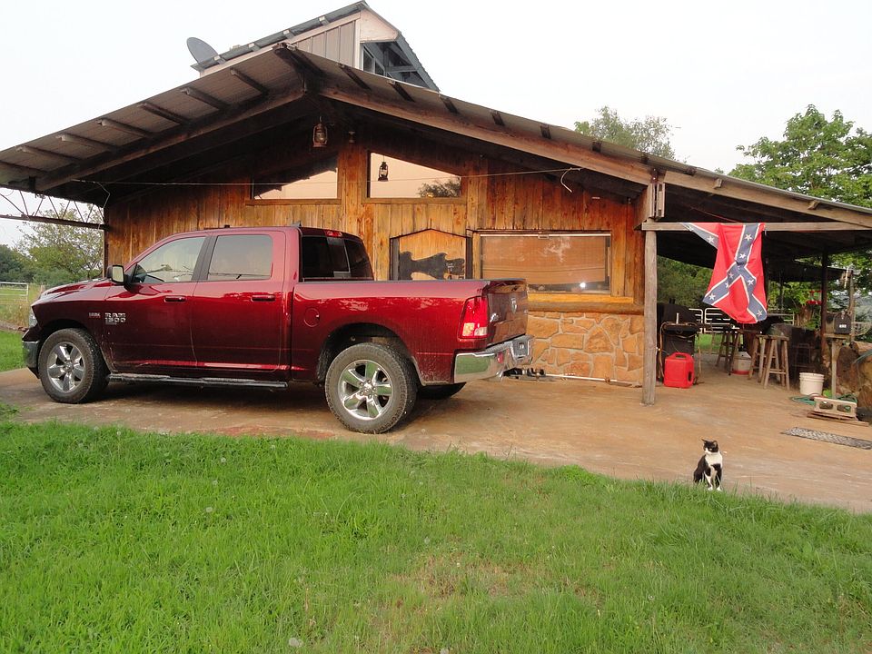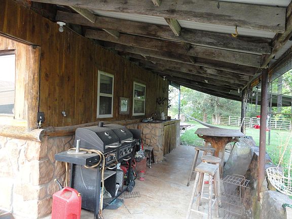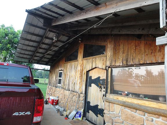 Unique house with beautiful land all useable for horses, hay or cattle. Well established hay field, pond, separate pasture fenced from hay field for livestock, barn, small shop, chicken coop with extra storage for tractor, tractor, bush hog, hay fork, box blade, 3,000 gallon plastic water storage tank with pump for watering garden, garden spot, barn has a man cave and an office/shop room and both are foam insulated, storm cellar, lots of extras convey as well. Too many items to list. Call Listing Agent Washer, dryer, cook stove & frig convey.