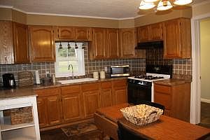 Move in Ready! Either a great get-a-way, full time home or a great rental opportunity. Feels very secluded yet easy access and easy walk to the school. Serene setting on 2+ acres. Spacious kitchen w/sit in dining and lots of beautiful cabinetry. This is a must see! Seller is offering Owner Financing.