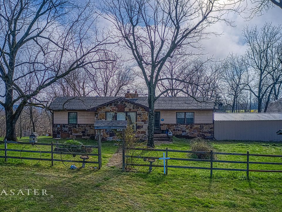 Nestled in the beauty of the Ozarks, this charming house sits on 90 acres of mostly pasture that is fenced & cross fenced with several barns and ponds. The location offers gorgeous panoramic views of the natural setting, which means you could have a front row seat to the beauty of the beautiful Ozark Mountains. The cozy 4 bd/4 ba home has a magnificent rock fireplace that is an impressive centerpiece for the home. Two of the four bathrooms have been handicapped modified to provide easy access for everyone. (1Bd/1Ba is in basement). Need more square footage? Finish out the basement and instantly add 1500 sq ft to your living space. This home also has an attached 4-car carport & a detached 2 car garage that is insulated with a loft area. Only 5 miles from the Buffalo National River!
