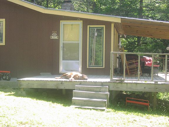 - Features Exterior: Large Trees, Porch Covered, Wooded, Deck, Workshop Area, Satellite Dish, Shed, Outbuilding(s), Propane Tank - Owned