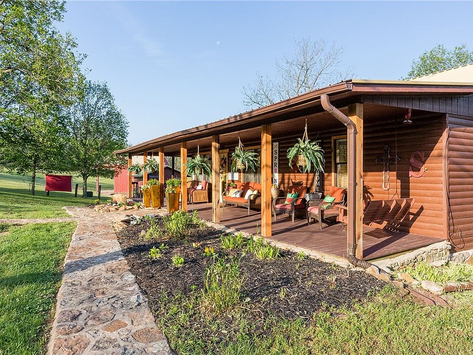 Upper Buffalo/ Boxley area 2400 sqft home 30 acres and whole house generator. Remodeled kitchen with 2 living areas. 2 new 50 gallon hot water heaters. Water filtration system. Granite countertops, chrome pullouts under sink. Stainless appliances convey. Wraparound deck/screen porch indoor/outdoor living spaces. Flower beds and landscaped yard. Stone paths connect buildings. Circular drive. Wet weather creek. Large trees with 3 ponds. Trash bin for pick up. Rural water. Fire pit. New metal roof and gutters. 500 gallon propane tank. Lg windows overlook pond and mountain views. New AC upstairs. Under porch enclosed storage. Security system/inactive. Detached home officewith AC, electric heat, and deck with a view. Two story steel building with remodeled Apartment, kitchen and bath below and a bedroom, additional bedroom above with closet. Deck with view. Great for guests.Two shops/carports, BBall Court, 4 wheeler trails. Near the Glory Hole, Whitaker Point, Boxley Valley, and many other points of interest.