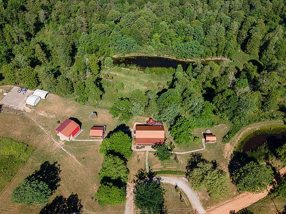 A lot of bang for your buck! 2400 sqft home 30 acres and whole house generator. Remodeled kitchen,2 living areas, 4 bdrms, 3 baths 1 in guest apartment all remodeled. 2 new 50 gallon hot water heaters. Water filtration system. Granite countertops, chrome pullouts under sink. Stainless appliances convey. Wraparound deck/screen porch indoor/outdoor living spaces. Flower beds and landscaped yard. Stone paths connect buildings. Circular drive. Wet weather creek. Large trees with 3 stocked ponds partially fenced. Trash bin for pick up. Rural water. Fire pit. New metal roof and gutters. 500 gallon propane tank. Lg windows overlook pond and mountain views. New ac upstairs. Under porch enclosed storage. Security system/inactive. See supplement for more details. 2 br and 1 bath in the guest suite.