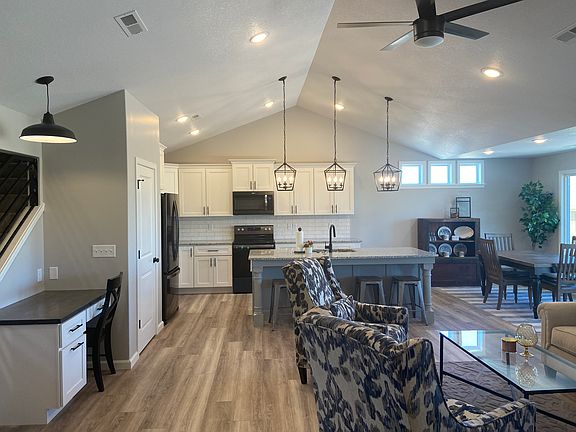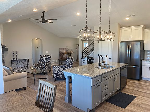 LOCATED IN EAST MANHATTAN'S NEW AFFORDABLE NEIGHBORHOOD, THE WILLOW GLEN DEVELOPMENT. BRAND NEW FLOOR PLAN FEATURES OVERSIZED TWO CAR GARAGE, CONCRETE SAFE ROOM, AND A SPACIOUS OPEN CONCEPT FLOOR PLAN. AMMENITIES INCLUDE A LARGE EAT-IN ISLAND, BUILT-IN DESK AREA OFF KITCHEN, VAULTED CEILINGS, GRANITE COUNTERTOPS, CUSTOM TILE BACKSPLASH IN KITCHEN AND BATHROOMS, AND A GAS FIREPLACE WITH A STONE AND SHIPLAP ACCENT WALL. DINING ROOM WALKS OUT TO A LARGE COVERED PATIO. MASTER BEDROOM FEATURES LARGE WALK-IN CLOSET AND DUAL VANITIES. BONUS FEATURE INCLUDES FLEX SPACE ABOVE GARAGE THAT CAN BE USED AS ADDITIONAL STORAGE, EXTRA BEDROOM, OR AN EXTRA FAMILY ROOM.