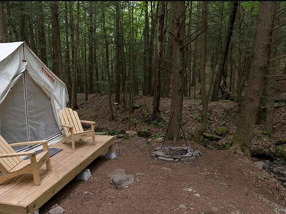 Welcome to over 11 acres of pure escape—recreational land that invites you to relax, recharge, and reconnect with nature. Set up your own glamping retreat with the existing Tentrr site, outhouse, fire pit and makeshift shower, create a hunting hideaway, or build the primary residence you’ve been envisioning. A picturesque stream winds through the property, adding to the serenity and natural water source with a bridge across the steam leading up to a 10 x 10 shed offering additional potential to the property. With prior approval and a successful rental history on Tentrr serving Bethel Woods visitors, this parcel also offers exciting business potential. From weekend adventures to full-time living, the possibilities here are truly endless. All of this and only 5 mins to Swan Lake where they have a medium sized pebble/sand beach and swimming area. There is a shaded picnic area and playground. Don't miss your chance to make this property yours today. Only 18 Mins to Bethel Woods Center for the Arts. Just 10 mins to NY-17. 25 mins to Resorts World Catskill Casino & Kartrite Indoor Water Park.