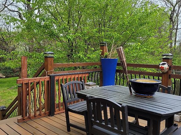 large kitchen with granite countertops, large living/dining room, a family room 22x15 with a mezzanine 15x8, that can be used as an office. A one car garage and a driveway for 4 more cars. A partially covered deck facing a creek surrounded by matured trees.