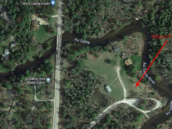 Ausable River Waterfront Parcel ...this 2+ acres ... 217+/- feet of frontage with barn, offering relaxation, great views, a fenced south line and gated driveway. ...Located less then 300 yards downstream from Wakeley Bridge, and adjacent to Wakeley Bridge Landing...This is a Rare opportunity being same family owned 90+ years.