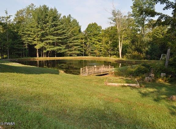 MOTIVATED SELLER - PRIVATE, COUNTRY SETTING 4+ Acres-Pond-Spacious 3 BR, 2.5 Bath countryside home nestled on 4.7 acre parcel, overlooking pond, just minutes to Honesdale. Features sun filled living area with fireplace, master bedroom suite, central air, eat in country kitchen, screened in porch, expansive deck, full and ready to finish basement, plus 3 car detached garage. MORE!