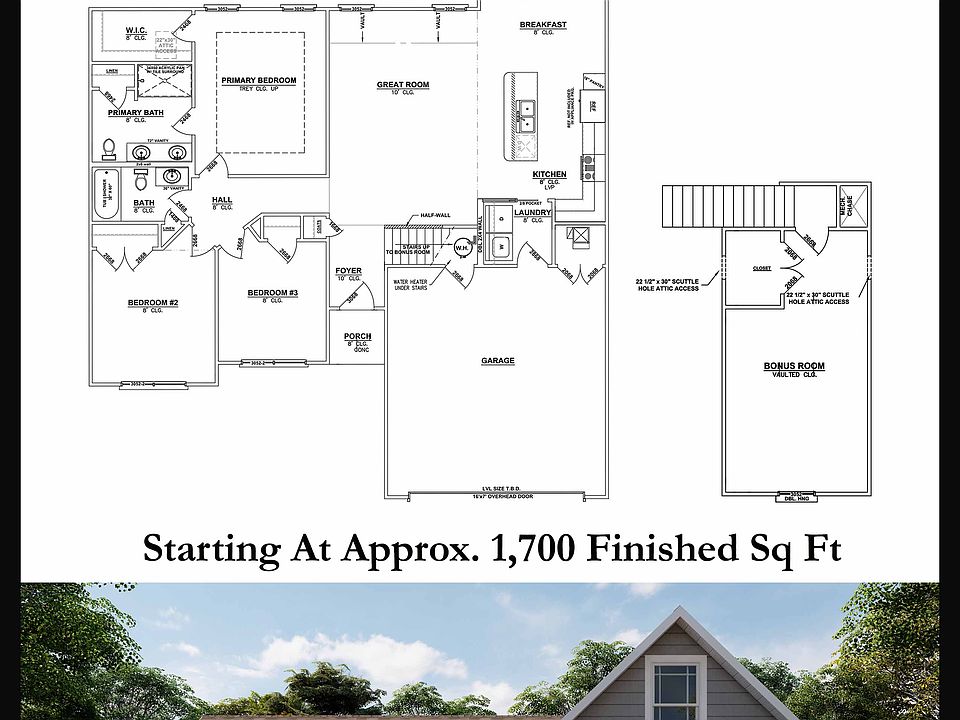 This 3 Bed/2 Bath home features a cozy front porch, foyer, spacious great room with 10 ft vaulted ceiling, open floor plan, and first floor laundry room with pocket door. The eat-in kitchen offers stainless steel appliances, granite countertops, pantry cabinet, and roomy breakfast nook! Primary suite offers an elegant trey ceiling, spacious walk-in closet, and en-suite bath with double vanity, linen closet, and large walk-in shower. Second floor features a large bonus room with vaulted ceiling that could serve as an additional bedroom, playroom, or office.The Finch Bonus offers the option of a covered front porch.*Floor plans and exterior details subject to change. Our online floor plans and renderings are only intended to give a general indication of the proposed layout and amenities.*