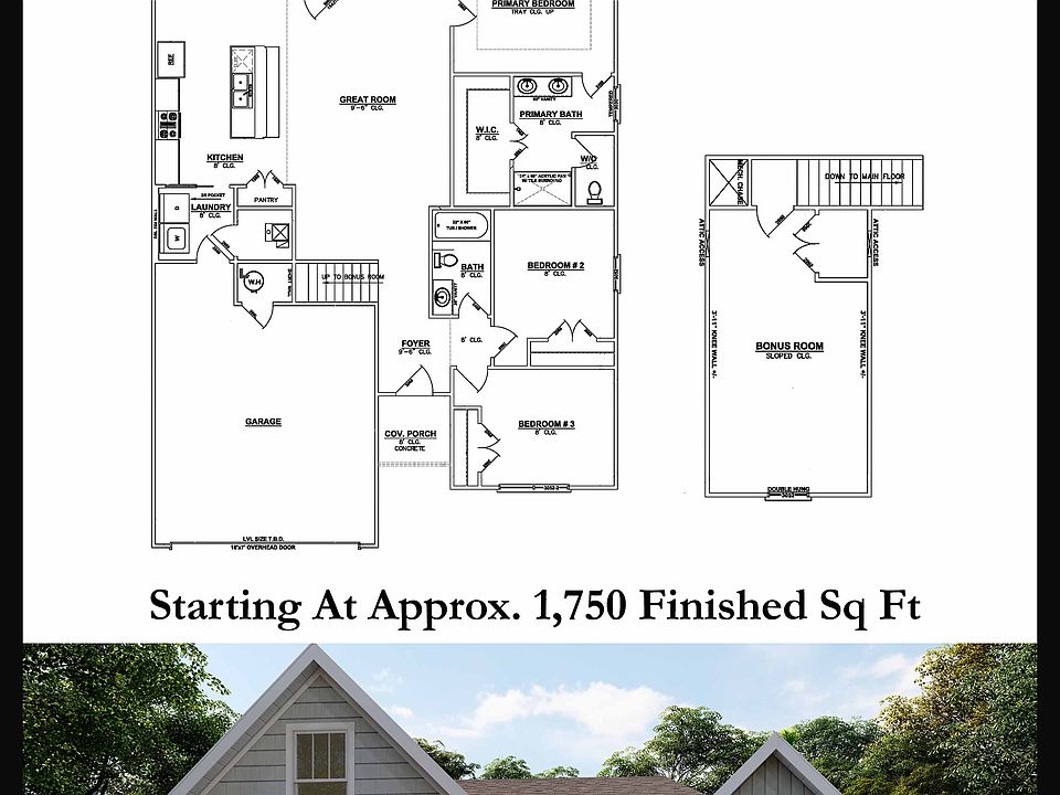 This 3 Bed/2 Bath home features a covered front porch, foyer, first floor laundry room with a pocket door, and spacious great room that walks out to back partially covered patio! The eat-in kitchen offers stainless steel appliances, granite countertops, pantry, and a cozy breakfast nook. The primary suite offers an elegant trey ceiling, spacious walk-in closet, and en-suite bath with double vanity, water closet, and large walk-in shower. The second floor features a large bonus room that could serve as an additional bedroom, playroom, or office.*NEW FLOOR PLAN! Pictures will be updated as construction progress.**Floor plans and exterior details subject to change. Our online floor plans and renderings are only intended to give a general indication of the proposed layout and amenities.*