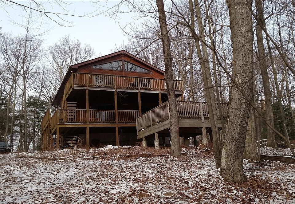 Enjoy all four seasons in this secluded Chalet on 12.61 wooded acres with sweeping winter views of Beltsville Lake and Franklin Township. The open concept plan is party friendly as well as efficient. The great room/dining room area features, cathedral ceiling, hardwood and laminate wood floors, wood burning stove and a wall of sun drenched windows. This sociable area leads to a large deck and lower level deck/ hot tub area. The lower level offers 4 large bedrooms and 2 full baths, plenty of space for family and friends. The bedroom level has access to a sprawling covered deck area and the hot tub. Full basement with coal stove, laundry area and open areas for game tables or storage, adds to the functionality of this unique property. Great location, minutes to the NE Extension, 15 minutes to Blue Mountain Ski Area, 20 minutes to Jack Frost , minutes to Beltsville and Mauch Chunk Lakes.