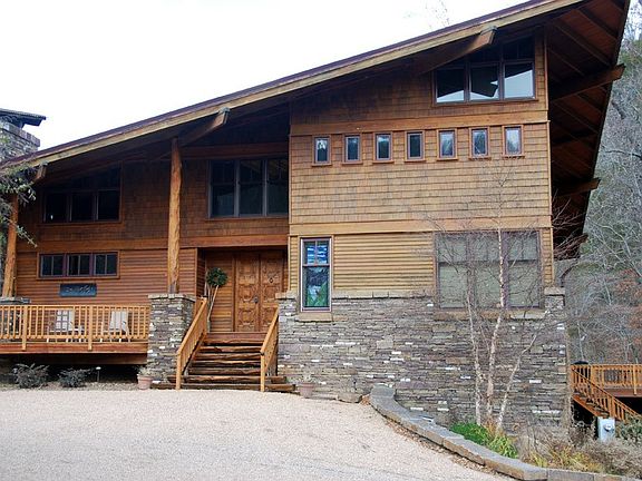 Check out this one of a kind residence, vacation home or tourism business. This amazing lodge sleeps 20 and the separate rented cabin sleeps 2-3 more. Perfectly located in Ponca, Arkansas on 4+ acres, only 1/4 mile from the Buffalo River National Park and less than a mile from the Ponca put-in on the Buffalo River and elk-viewing in the Boxley Valley. This spectacular lodge/home has approximately 6000 sq ft (per Assessor), 4 master suites each with jetted tubs and separate showers, sitting areas and screened-in porches. There are also 2 sleeping lofts for extra guests. Two spacious living areas with cathedral ceilings and a wood burning fireplace. The kitchen is every woman's dream! Features include: double refrigerator, freezer, ice maker, wine cooler, double oven, 6 burner gas stove, warming drawer, granite counter tops, cherry cabinets, hardwood floors and a huge breakfast bar! There is a pass through to a large dining room with a wood burning fireplace, cathedral ceilings and a wonderful custom built 14 person dining room table and chairs. Other features include: cherry hardwood floors, an open floor plan, and lots of glass which brings the beautiful mountain surroundings into the lodge. There is a 3 car garage and large storage rooms as well. Outdoors you will find over 2000 sq ft of decking, much of which is covered, a bridge goes over the beautiful creek and connects the home and decks to a pavilion with a double fireplace. This outdoor area is perfect for weddings, family reunions or to just sit and enjoy the creek and surrounding mountains. Also included is a separate cabin that includes a kitchen/living area fully equipped, deck, patio, hot tub, fire pit and privacy fence. The area is a top tourist destination with paddling, fishing, hiking, elk viewing, mountain biking, 4 wheeling and more. You or your guests have unlimited outdoor adventures nearby and luxury comforts inside. Whether a business or for your own enjoyment or both, this property is first class all the way and is being sold fully equipped and furnished!!