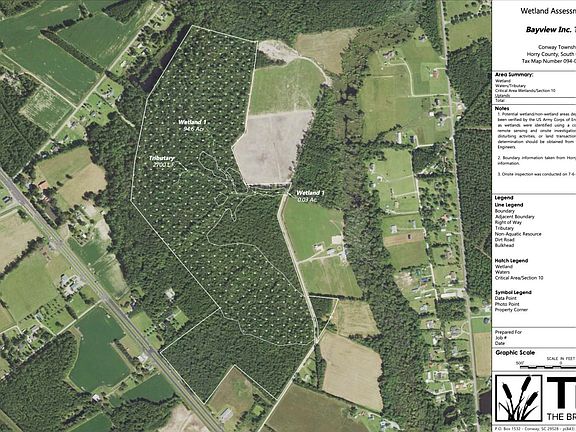 Approx. 136.9 acres located the near the intersection of Hwy 501 & Roleighn Rd and approx. 1 mile east of the SC-22 Interchange in Conway. Wetland assessment completed in July 2022 shows approx. 42.2 upland acres and 94.7 acres of wetlands. Approx. 830' frontage on Hwy 501 and over 2,700' frontage on Roleighn Rd. HC Zoning. Measurements are approximate and not guaranteed. Buyer responsible for verification.