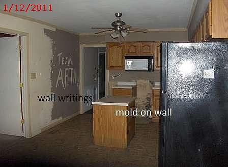 Exterior Features: Single story red brick home with green accents, attached garage on side of home. Yard is tame, curb appeal is good, looks in good condition. Interior Features: Looks in fair shape, walls have some punctures and scuffs that need work. Flooring needs cleaned in a few rooms. Kitchen is intact with sink and appliances. Bath is intact with all appliances present. Wood floors in fair shape and carpet in rest of rooms. looks healthy throughout just needs cosmetic work