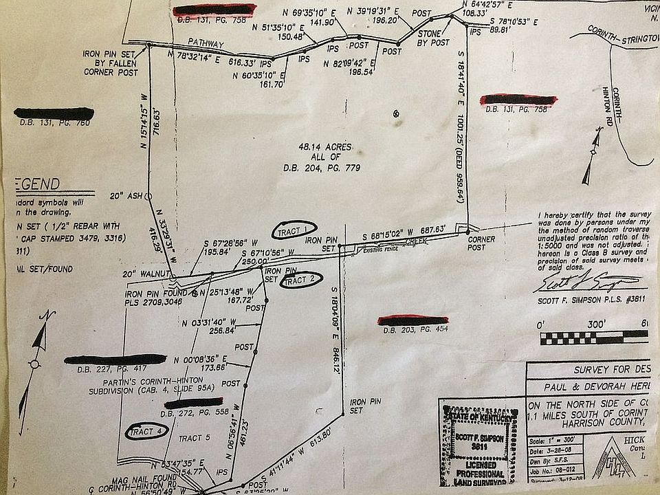 Approx 56 acres available. Hunters paradise!!! Plenty of choices to build your home in seclusion!! City water at the road. Wooded and flat spots to rolling. Creek runs through the property. Road ends at the famous Webber Sausage. Located 1 exit south from The Ark Encounter in Williamstown and just a few exits and few minutes from Georgetown, KY. Located in Harrison County, KY As pictured, Tract 1, 2 & 4 are available. Tract 5 is owned by a separate individual who lives on the property, unrelated.