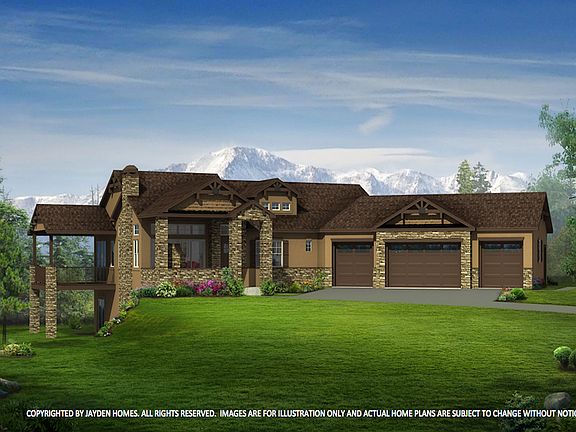 The Foxwood by Jayden Homes offers a versatile design of 4 bedrooms, 4 baths, and a 3-car garage. The Foxwood is a ranch home of 4,314 square feet. The main level features high ceilings in the great room, a large kitchen that includes an expanded island with an optional built-in eating nook, coffered ceiling in the master bedroom, a 5-piece master bathroom, and a guest suite/study on the main level. This home showcases Colorado-style outdoor living with a front courtyard, a large covered deck with all maintenance-free decking, and a patio on the lower level. The lower level includes a great recreation room, game room, and soda bar for all your entertainment needs. Please note that not all homes are available on all homesites. As well, we welcome your custom plans. Please note home price does not include homesite. See homesites for individual pricing.