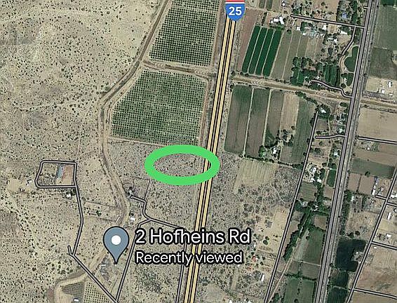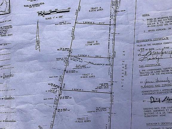 6.08 acres of beautiful raw land directly off I-25 outside of Belen. Pecan groves along the north side of the property, gorgeous mesa views to the west. Easement along eastern border with gate access to I-25 for building and loading in. No services currently extant on property.