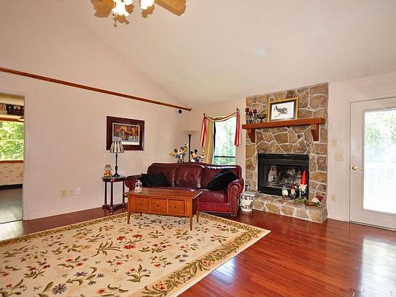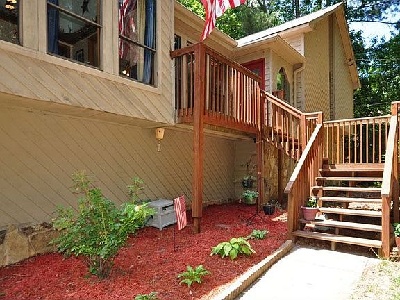 Great home on a large, private lot. Near Victoria Harbor Marina. New exterior paint. Hardwoods throughout entire home. Country kitchen with view of backyard and stainless steel appliances. Den with fireplace and view of backyard. Finished partial basement with laundry, full bath, bedroom, and family room. Huge drive under garage with exterior entry. Tankless hot water heater. 2 level deck. 2 story 8' x 12' out building. Walking distance to Lake Allatoona.