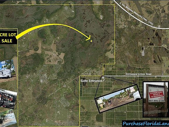 Fantastic 1.25 Acre Lot in Suburban Estates, Holowpaw Florida In Osceola County. PRICED FOR A QUICK SALE!! ACT FAST! -----CALL 213-503-9464. ----First Person To Pay Will Get This Great Deal! This 1.25 Acre Lot is located in an island like area that is partially surrounded by Big Bend Swamp. About 75% of the lot appears to be mostly dry, with the SouthEast part of the lot abbuting Big Bend Swamp. There are a number of existing campsites on this "island" area, but this lot may be prone to some seasonal wetness. This Area Is For Serious Off-Roaders Only! You Will Need A Snorkel Equipped 4x4 or Other Off Road Vehicle To Access The Lot, To Get To This Lot Your Vehicle Will Need To Go Under Water! Since This Is A Less Populated Area of Suburban Estates, This Lot Would Make A Perfect Hunting Base Camp! Wild Game - Hog, Deer, & Turkey Run All Over Suburban Estates. An Existing Jeep Trail Runs Right To The Property. (see photos) FIRST TIME FOR SALE IN OVER 40 YEARS! The Prior Owner Purchased This Lot In 1976! Suburban Estates is a 10,000 acre undeveloped subdivision in Holowpaw, near Saint Cloud in Osceola County. Land inside of Suburban Estates is for Recreational Use. This area is used by the landowners for Hunting, Fishing, Four-Wheeling, Mudding, Camping, etc. The property is gated and only landowners and their guests have access via the locked gate entrance. This land is deemed un-buildable; however from what I understand structures of a non-permanent nature are allowed. So Small Cabins, RV's, Mobilehomes, Tiny Homes, Sheds, Shipping Containers, etc. should be fine as long as they do not have permanent foundations. I have included several pictures of actual campsites inside of Suburban Estates, some even have elaborate solar power systems! If you are looking for a place to park your RV or Tiny Home and Live Off-The-Grid, or if you want a place to camp out, or establish a Hunting Basecamp Then Suburban Estates may be perfect for you! I live in California and I have never been to the lot. I Do NOT have a gate key, and thus I can not show the land. I have added many photos of the land, and I have priced the land aggressively due to the fact that it can not be shown. This Lot Has A --BUY NOW-- Price of ONLY $4,000! Please Understand That One of The Reasons That This Property Is A Great Deal Is Because NO FINANCING IS OFFERED! You MUST Be In A Position To Pay In Full! Details About This Property: The Lot is approximately 165' x 335' It is over 1.25 Acre This Lot's Parcel Number is # 172732000042220000 ================PRICED FOR A QUICK SALE!! ACT FAST! -----CALL 213-503-9464. ACT FAST! . First Person To Pay Will Get This Great Deal! Interested? Have Questions? Don't Regret, Take Action...Give Me A Call I Will Be Happy To Talk To You! For More Info Call or Text Property Owner, My number is listed under "Property Owner" BELOW (almost to the bottom) OR Scroll All the way down To "Listing Provided By Owner" & click on "see listing website"