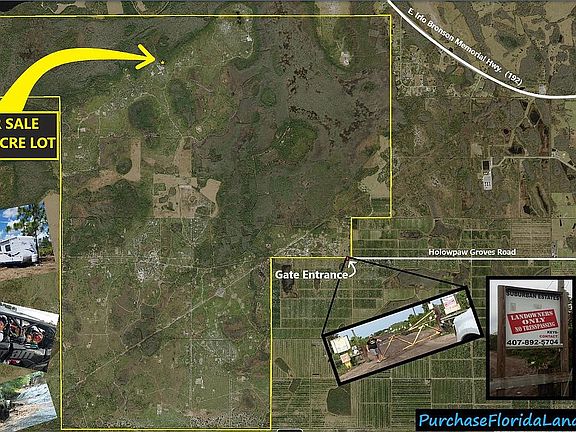 Fantastic 1.25 Acre Lot in Suburban Estates, Holowpaw Florida In Osceola County. FIRST TIME FOR SALE IN OVER 50 YEARS! The Prior Owner Purchased This Lot In 1968! Suburban Estates is a 10,000 acre undeveloped subdivision in Holowpaw, near Saint Cloud in Osceola County. Land inside of Suburban Estates is for Recreational Use. This area is used by the landowners for Hunting, Fishing, Four-Wheeling, Mudding, Camping, etc. The property is gated and only landowners and their guests have access via the locked gate entrance. This land is deemed un-buildable; however from what I understand structures of a non-permanent nature are allowed. So Small Cabins, RV's, Mobilehomes, Tiny Homes, Sheds, Shipping Containers, etc. should be fine as long as they do not have permanent foundations. I have included several pictures of actual campsites inside of Suburban Estates, some even have elaborate solar power systems! If you are looking for a place to park your RV or Tiny Home and Live Off-The-Grid, or if you want a place to camp out, or establish a Hunting Basecamp Then Suburban Estates may be perfect for you! I live in California and I have never been to the lot. I Do NOT have a gate key, and thus I can not show the land. I have added many photos of the land, and I have priced the land aggressively due to the fact that it can not be shown. This Lot is in The Northern Section of Suburban Estates, It Would Make A Perfect Campsite Lot! Or A Great Hunting Basecamp as The Lot is North of A Heavily Wooded Area. Wild Game - Hog, Deer, & Turkey Run All Over Suburban Estates. This Lot Is Easy To Find Via The Existing Jeep Trail. (see photos) There Are Numerous Existing Campsites In This Area (See Photos) This Lot Has A --BUY NOW-- Price of ONLY $4,000! Please Understand That One of The Reasons That This Property Is A Great Deal Is Because NO FINANCING IS OFFERED! You MUST Be In A Position To Pay In Full! Details About This Property: The Lot is approximately 165' x 335' It is over 1.25 Acre This Lot's Parcel Number is # 122731999502220010 ================PRICED FOR A QUICK SALE!! ACT FAST! . First Person To Pay Will Get This Great Deal! Interested? Have Questions? Don't Regret, Take Action...Give Me A Call I Will Be Happy To Talk To You! For More Info Call or Text Property Owner, My number is listed under "Property Owner" BELOW (almost to the bottom) OR Scroll All the way down To "Listing Provided By Owner" & click on "see listing website"
