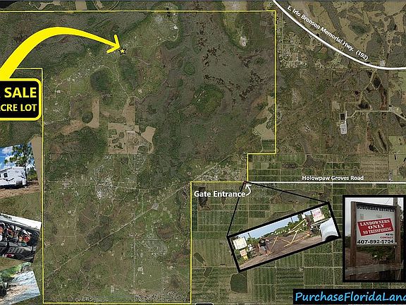Fantastic 1.25 Acre Lot in Suburban Estates, Holowpaw Florida In Osceola County. FIRST TIME FOR SALE IN OVER 50 YEARS! The Prior Owner Purchased This Lot In 1969! Suburban Estates is a 10,000 acre undeveloped subdivision in Holowpaw, near Saint Cloud in Osceola County. Land inside of Suburban Estates is for Recreational Use. This area is used by the landowners for Hunting, Fishing, Four-Wheeling, Mudding, Camping, etc. The property is gated and only landowners and their guests have access via the locked gate entrance. This land is deemed un-buildable; however from what I understand structures of a non-permanent nature are allowed. So Small Cabins, RV's, Mobilehomes, Tiny Homes, Sheds, Shipping Containers, etc. should be fine as long as they do not have permanent foundations. I have included several pictures of actual campsites inside of Suburban Estates, some even have elaborate solar power systems! If you are looking for a place to park your RV or Tiny Home and Live Off-The-Grid, or if you want a place to camp out, or establish a Hunting Basecamp Then Suburban Estates may be perfect for you! I live in California and I have never been to the lot. I Do NOT have a gate key, and thus I can not show the land. I have added many photos of the land, and I have priced the land aggressively due to the fact that it can not be shown. This Lot is in The Northern Section of Suburban Estates, It Would Make A Perfect Campsite Lot! Or A Great Hunting Basecamp as The Lot is North of A Heavily Wooded Area. Wild Game - Hog, Deer, & Turkey Run All Over Suburban Estates. This Lot Is Easy To Find Via The Existing Jeep Trail. (see photos) There Are Numerous Existing Campsites In This Area (See Photos) This Lot Has A --BUY NOW-- Price of ONLY $4,000! Please Understand That One of The Reasons That This Property Is A Great Deal Is Because NO FINANCING IS OFFERED! You MUST Be In A Position To Pay In Full! Details About This Property: The Lot is approximately 165' x 335' It is over 1.25 Acre This Lot's Parcel Number is # 122731999504210010 =============== PRICED FOR A QUICK SALE!! ACT FAST! Call 213-503-9464. First Person To Pay Will Get This Great Deal! Interested? Have Questions? Don't Regret, Take Action...Give Me A Call I Will Be Happy To Talk To You! For More Info Call or Text Property Owner, My number is listed under "Property Owner" BELOW (almost to the bottom) OR Scroll All the way down To "Listing Provided By Owner" & click on "see listing website" or just visit purchasefloridaland.com