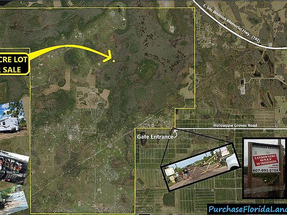 Prime Florida Land For Sale in Suburban Estates, Holopaw Florida Fantastic 2.5 Acre Lot. FIRST TIME FOR SALE IN OVER 40 YEARS! The Prior Owner Purchased This Lot In 1976! Suburban Estates is a 10,000 acre undeveloped subdivision in Holowpaw, near Saint Cloud in Osceola County. Land inside of Suburban Estates is for Recreational Use. This area is used by the landowners for Hunting, Fishing, Four-Wheeling, Mudding, Camping, etc. The property is gated and only landowners and their guests have access via the locked gate entrance. This land is deemed un-buildable; however from what I understand structures of a non-permanent nature are allowed. So Small Cabins, RV's, Mobilehomes, Tiny Homes, Sheds, Shipping Containers, etc. should be fine as long as they do not have permanent foundations. I have included several pictures of actual campsites inside of Suburban Estates, some even have elaborate solar power systems! If you are looking for a place to park your RV or Tiny Home and Live Off-The-Grid, or if you want a place to camp out, or establish a Hunting Basecamp Then Suburban Estates may be perfect for you! I live in California and I have never been to the lot. I Do NOT have a gate key, and thus I can not show the land. I have added many photos of the land, and I have priced the land aggressively due to the fact that it can not be shown. It Would Make A Perfect Campsite or Hunting Basecamp. Wild Game - Hog, Deer, & Turkey Run All Over Suburban Estates. This Lot Is Easy To Find Via The Existing Trail (see photos). There Are Existing Campsites nearby. (See Photos) This Lot Has A --BUY NOW-- Price of ONLY $5,000! Please Understand That One of The Reasons That This Property Is A Great Deal Is Because NO FINANCING IS OFFERED! You MUST Be In A Position To Pay In Full! Details About This Property: The Lot is approximately 330' x 330' It is over 2.5 Acres! This Lot's Parcel Number is # 182732000024110000 =========================PRICED FOR A QUICK SALE!! ACT FAST! Call 213-503-9464. First Person To Pay Will Get This Great Deal! Interested? Have Questions? Don't Regret, Take Action...Give Me A Call I Will Be Happy To Talk To You! For More Info Call or Text Property Owner, My number is listed under "Property Owner" BELOW (almost to the bottom) OR Scroll All the way down To "Listing Provided By Owner" & click on "see listing website" or just visit purchasefloridaland.com