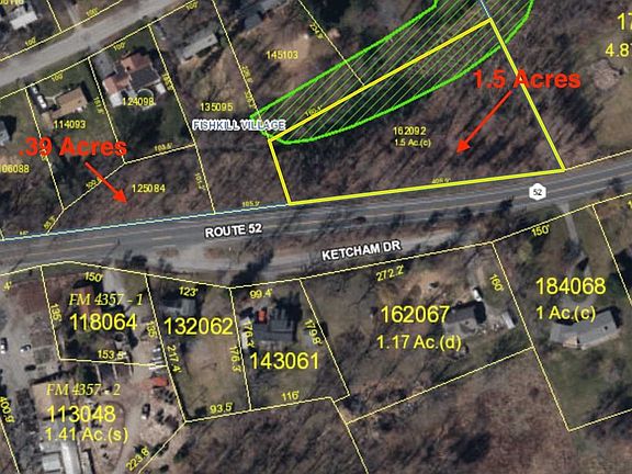 Come build your new home in Fishkill...Right on RT 52....plenty of road frontage....2 parcels...1.5 acres and .39 acres...sold together...great commuter location...near shopping....1.5 acre property yes to water. .3 acre yes to both water and sewer. Small village easement between two properties but said could possibly bring sewer over from .3 acre to the 1.5 acre. Both properties R15 residential. Possibly 2 homes on 1.5 acre and 1 home on .3 acre....depending on offer seller may sell either parcel separately