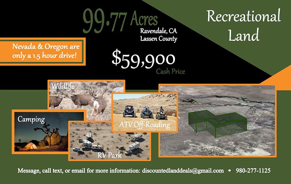 100 Lassen County CA East of Ravendale, off Horn Road. Easy access via Horn Road. Cattle Grazing, off grid camping, and outdoor recreation opportunities with wide open spaces and views of the South Warner Mountains. Mid way between Susanville and Alturas in the NE Corner of California.