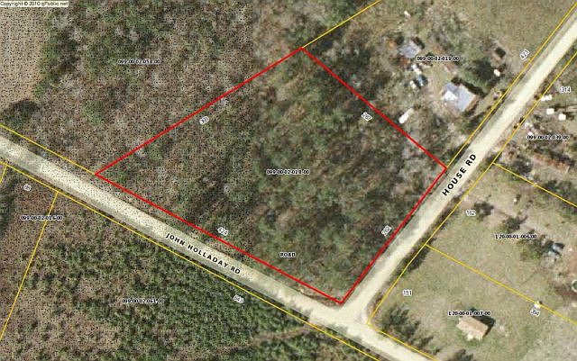 2.6 acre wooded lot near the town of Summerton, Lake Marion access and Interstate 95. Could make a nice place for a home! At the corner of House Road and John Holladay Road.
