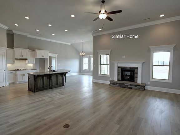 Upgrades included in price:Gas cooktop package with Cabinet Vent Hood.Soft Close Cabinets.Under cabinet lights.All brick Glenmont A is an open plan with 3 car side entry garage and is backed by a 2-10 home warranty.. Home has 4 bedrooms, 3.5 baths and a bonus room. Bonus room and one bedroom are upstairs with one bath. Home has wood plus flooring (Mohawk Revwood) in all living areas and bedrooms. Great Room features 12' ceiling, extensive trim, gas-log fireplace with upgraded treatment, wood plus flooring, floor outlet, recessed lights and ceiling fan. Dining room has 10' coffered ceiling, wood plus flooring and extensive trim including shadow box under chair rail. Home has guest half bath downstairs. Open Kitchen includes 12' ceiling, custom cabinetry with granite countertops, large 45-degree island with bar seating, stainless appliances (Gas Cooktop, Wall oven, Dishwasher, Wall Microwave), tile backsplash, wood plus flooring, recessed lighting, and corner pantry. Breakfast has 12' ceiling, wood plus flooring and extensive trim. Master bedroom has 11' double tray ceiling, recessed lighting, extensive trim, ceiling fan and huge walk-in closet. Master bath has 11' ceilings, glamour tub, corner tile shower with two shower heads and rimless door, separate toilet area and double vanity with granite. The home has hardwood stairs leading to the second story. Additional bedrooms have crown molding and ceiling fans as does the upstairs bonus room. The additional baths have tile f