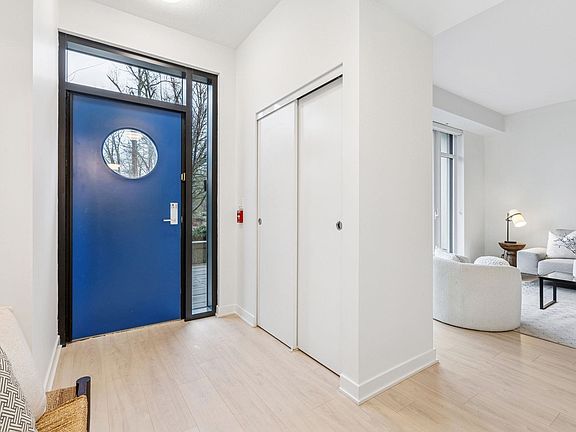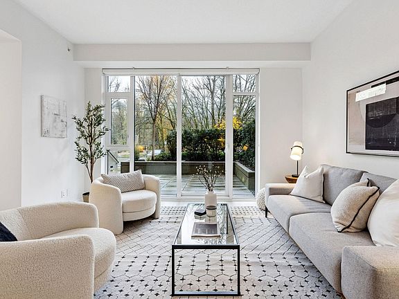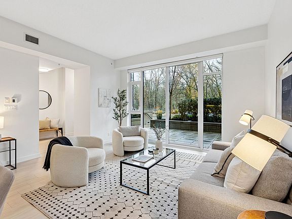 GORGEOUS concrete 2 BED, 2.5 BATH + DEN townhome at HUNTER in Lynn Creek - a vibrant, family-friendly community surrounded by nature. This modern contemporary home overlooks Seylynn Park & features a large private patio ideal for summer BBQs & relaxed afternoon lounging. The bright open plan with 9' ceilings offers over 1,540 SF of beautifully curated finishes, including a gourmet Fisher & Paykel kitchen w/quartz counters & sleek European cabinetry. Enjoy spacious bedrooms with spa-inspired baths, wide-plank flooring & air conditioning throughout. Amenities include a gym, sauna/steam rooms & lounge. The new pedestrian bridge links you to Bridgman Park, the Spirit Trail & local shops, with the community centre & Phibbs Exchange just a short walk away. Two parking. OPEN HOUSE SUNDAY 1-3PM.