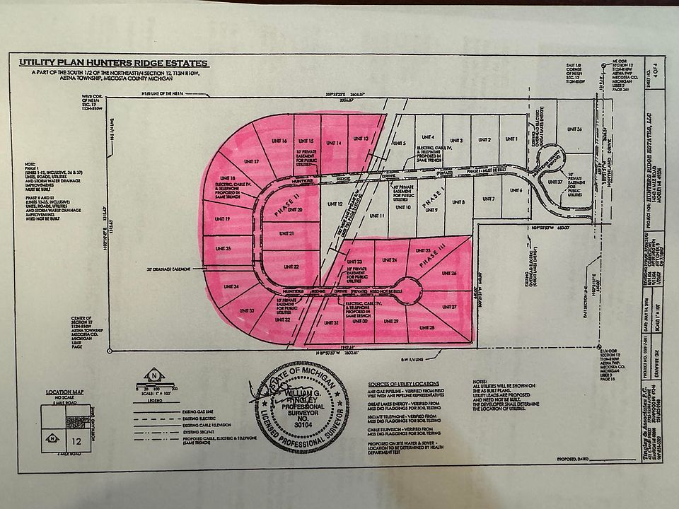 Approximately 25 acres of vacant land located in Hunters Ridge Estates. We are selling off the remaining 23 undeveloped lots as one parcel of land. There is approximately 21 acres of common area that surround the property that is part of Hunters Ridge Estates that can never be built on. This means no close neighbors to the west. The land consists of about 8 acres of open flat fields on the east side and then gently sloping woods as you head west. Build your dream home or buy as an investment and develop the remaining lots over time. This would be a great spot to build a barndominium. If you have young kids you will enjoy the day care center at the entrance of the development or if you have high school kids the high school is right across the street. Seller is a licensed Real Estate Agent