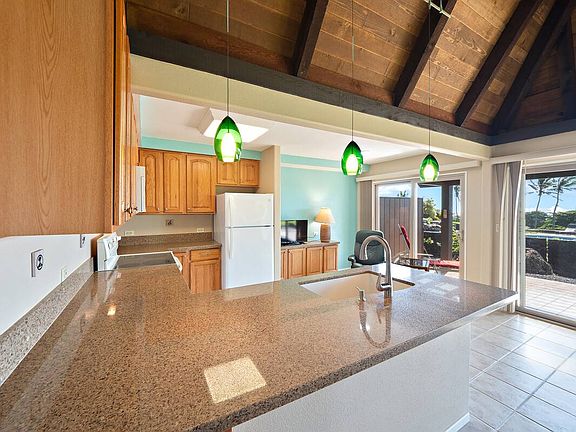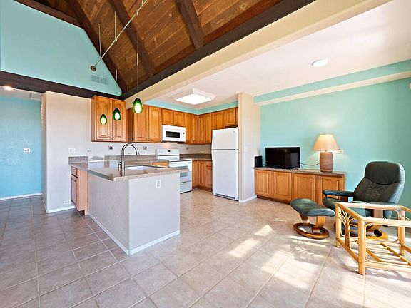 This condo type rarely comes available for sale in this complex. Highly desired as it is an end unit with no one above or below it. It has huge vaulted ceilings with this polynesian style architecture. This unit has been cared for as an owner unit, not renting the unit during the recent 10 years of proud ownership. Partially Furnished!! Living space as double slider doors to large, oversized lanai with fabulous pool and Ocean Views!!! Look out towards the ocean and unique coastal rock formation know as "The Alligator".