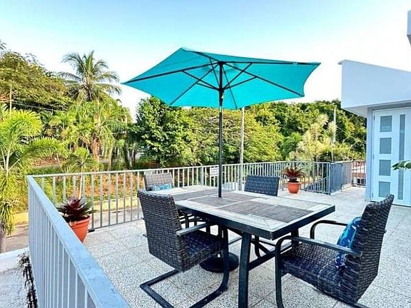 This spacious two-unit home in Fajardo sits on a 300 m² lot and offers a total of 1,804 ft² of construction, making it perfect for multi-generational living or investment potential. The first level features 3 bedrooms, 1 full bathroom, 2 half bathrooms, a living and dining area, kitchen, private office, covered carport for one vehicle, and a patio. The second level, with its own private entrance, offers 2 bedrooms, 1 bathroom, living and dining areas, kitchen, and a large terrace with breathtaking views of the ocean and El Yunque. With two separate LUMA meters and a prime location just two minutes from El Conquistador Hotel and Seven Seas Beach, this property combines comfort, convenience, and stunning scenery—ideal as a primary residence, vacation home, or income-generating investment.
