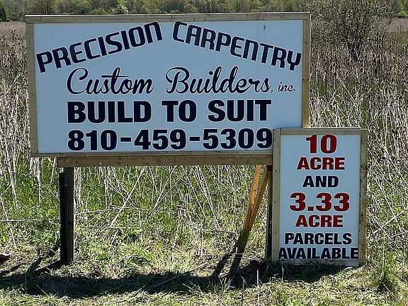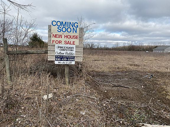 BRAND NEW on 3.33 Acres. I am building a 1600 square foot ranch home on this beautiful piece of property just 300 feet off m-19. Basement is going in now and this home will be complete in four months guaranteed. Still time to pick colors for roof ,siding,paint and everything else. I have built over 60 homes in this area and have a home booklet that I can send you that has lots of floor plans and pictures. Brochure also contains a list of my general inclusions and references. My homes are custom built not modular . Lots of references. Normal time span for me to build a complete house is four months and I have plenty of references to confirm this. Please call with any questions . Please note that the property is east of m-19. Not west as shown. Actual address is 10730 Imlay city rd. Will not last