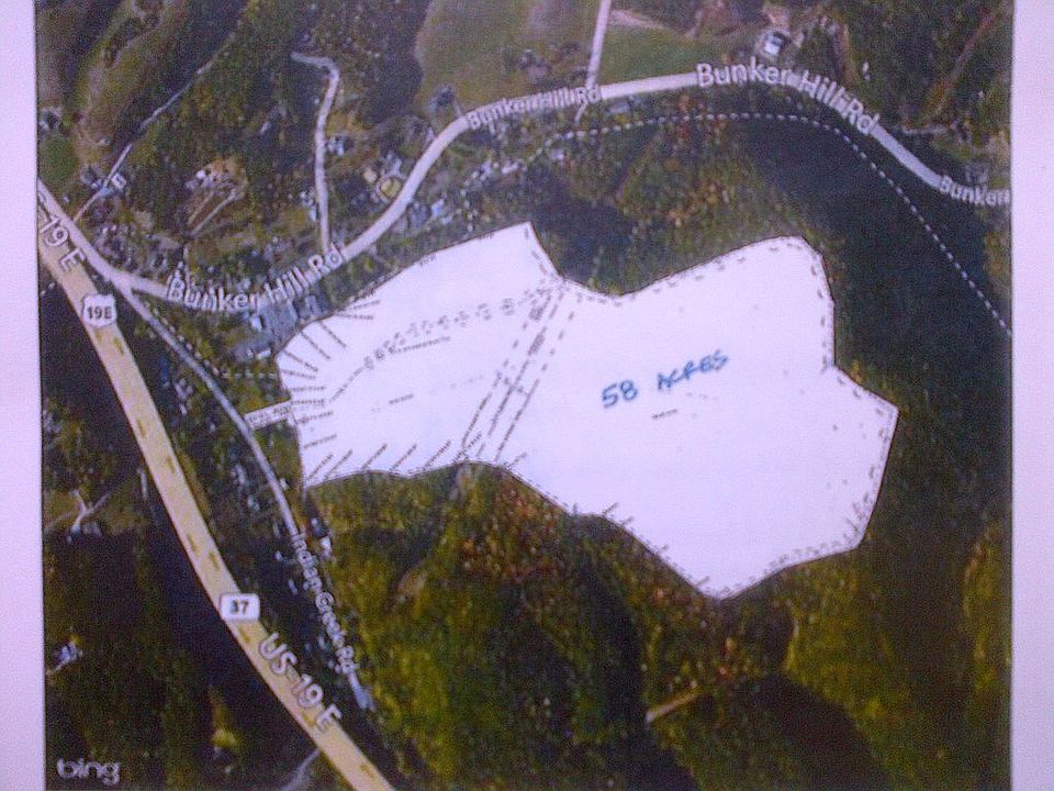 58 acres of land in eastern TN, located in Carter County, the eastern part of the state, just a few miles from Johnson City, Bristol and Elizabethton. Less than 1/2 a mile from the 4-lane highway (19E), just a few miles north of Elizabethton that provides quick access to all the tri-cites. Deeded right-of-way from Indian Creek Road. Mostly wooded, with hills and valleys with a small year-round stream along a portion of its border. Trees cover most the property with a dirt road along most of the perimeter allowing access to most it. Trees could be timbered to provide income. Excellent for building a private residence or just hunting the deer and turkey. I have clear title. Survey over-layed on map is approximate location of property, deed to govern. Asking $125,000, probably the lowest per acre price in the area. Call Tom