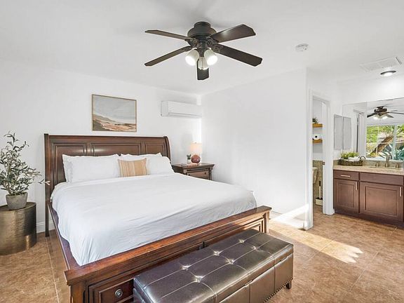 - Bedroom #4 (casita #1): California king with ensuite bathroom, nightstand, dresser, ceiling fan, 50" smart tv, split A/C unit, closet, luggage rack, separate entrance