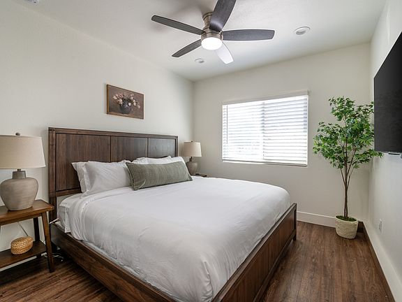 - Bedroom #2: queen bed, night stand, table lamp, ceiling fan, 50" smart tv, closet, luggage rack